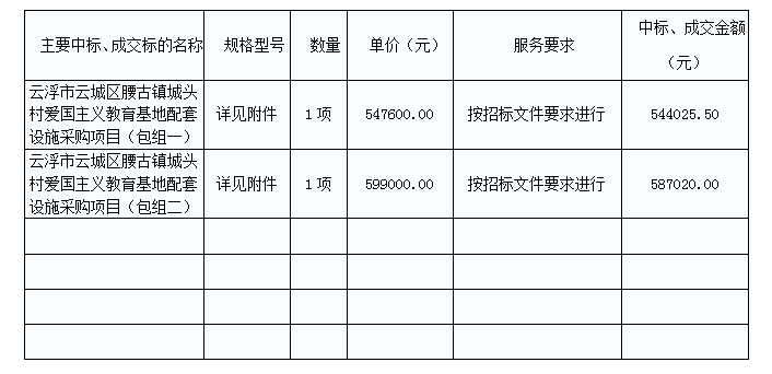 云浮市云城區(qū)腰古鎮(zhèn)城頭村愛國主義教育基地配套設施采購項目中標公告