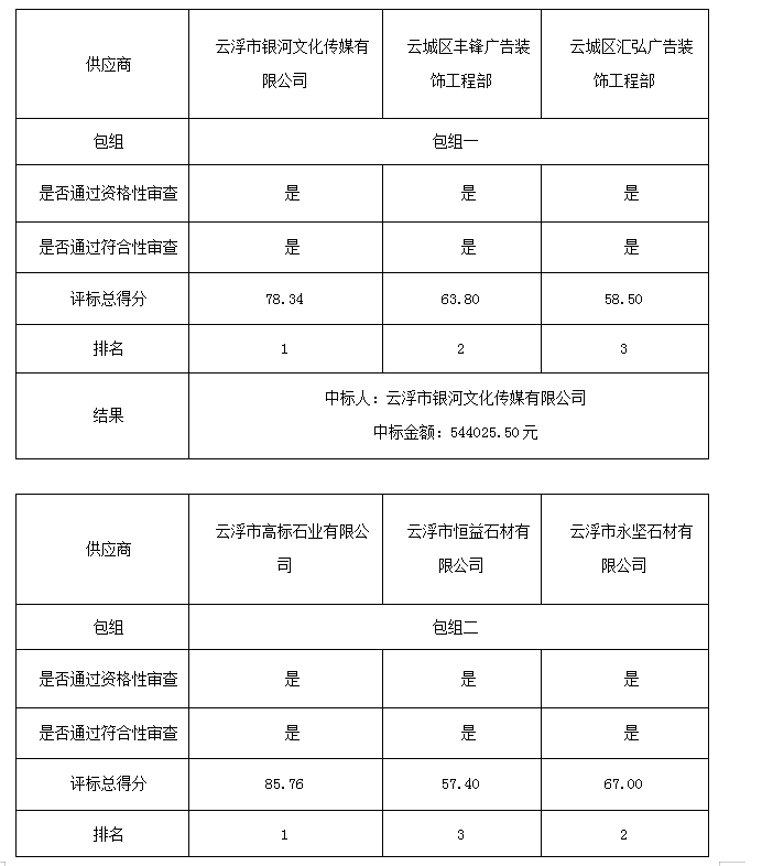1:中標供應商名稱 云浮市銀河文化傳媒有限公司 法人代表 唐海群 地址 云浮市云城區(qū)高峰羅桂橋新桂區(qū)45幢9號一層一卡商鋪(包組一)