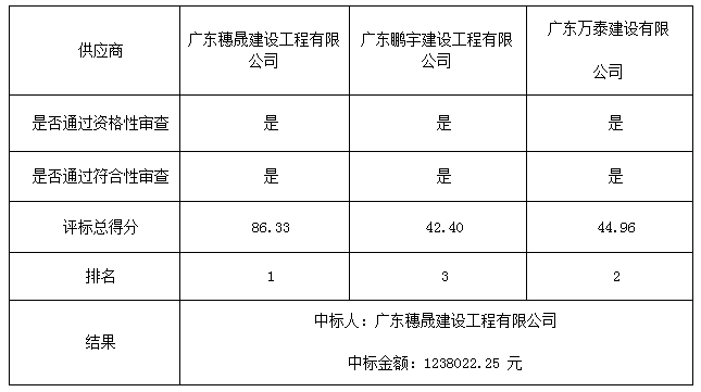 1:中標供應商名稱廣東穗晟建設工程有限公司 法人代表 李輝龍 地址 茂名市電白區(qū)海濱新區(qū)第一小區(qū)單體小住宅D區(qū)D02號401房